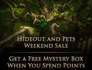 This weekend, we’re having a sale on Hideouts and Pets! You can view the full selection of discounted items here. You’ll also receive a free The Third Edict Mystery Box when you spend any amount of points in the store.