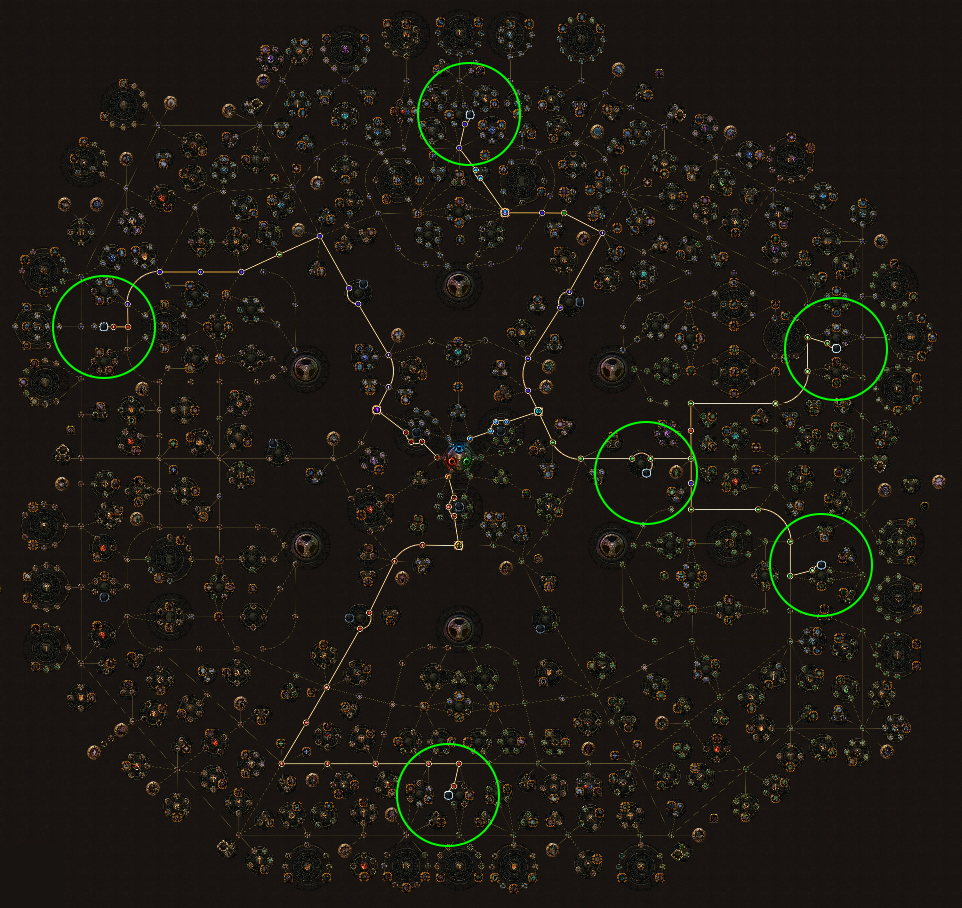 We only use large cluster jewels because we need to use medium cluster jewels. The best base is an 8-point one enchanted with "12% increased Physical Damage". The best mods in my opinion are implicit mods: (1) 10% reduced Reflected Elemental Damage taken explicit mods: (1) Added Small Passive Skills also grant: +(8–10) to Maximum Life (2) Added Small Passive Skills have 35% increased Effect (3) dex (4) res Alternatively, large cluster jewels enchanted with "10% increased Elemental Damage" are also OK. The only notable worth taking is Prismatic Heart. Make sure your combination of notables "pushes" Prismatic Heart to the front because we only want to spend 5 skill points on each large cluster jewel for the two sockets. 4.10.2 Medium cluster jewels