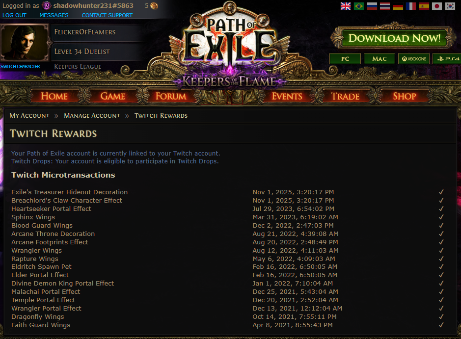 Connected twitch, the MTX are taken but they dont show ingame in POE1