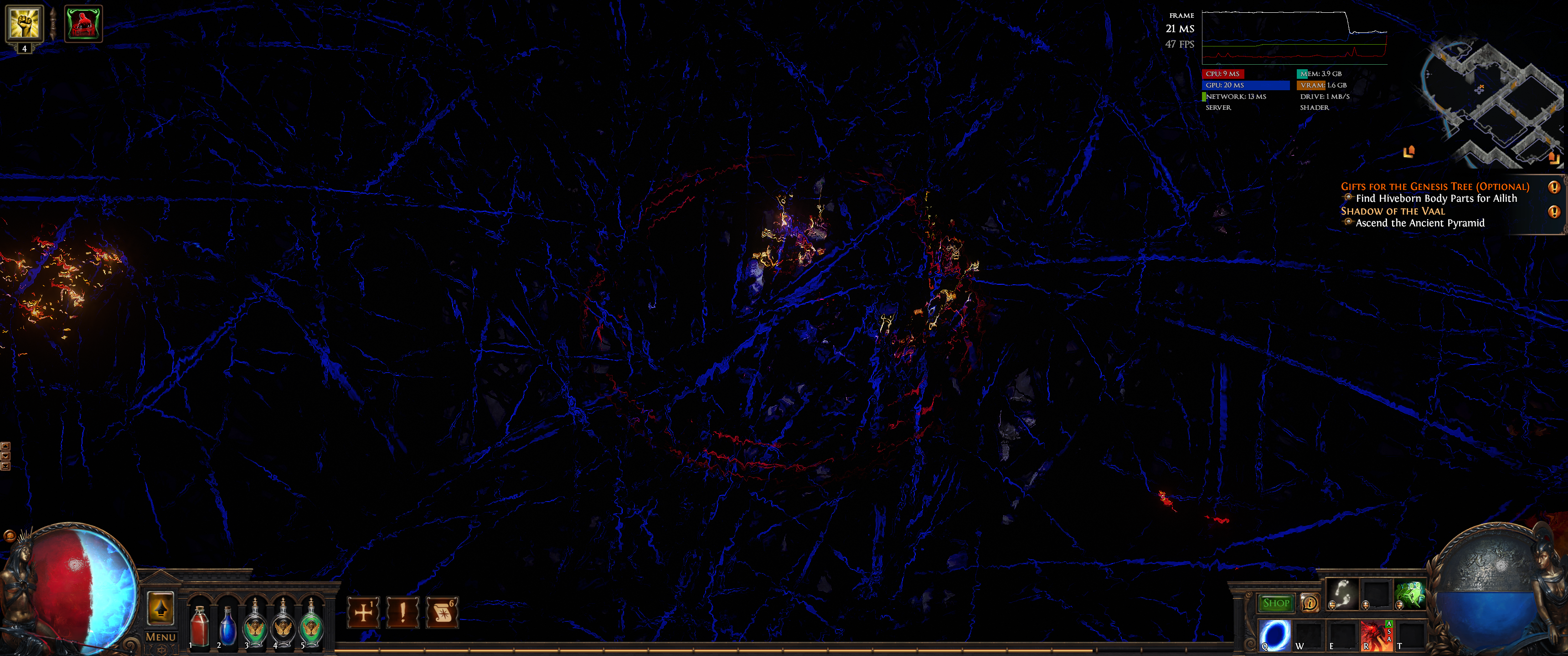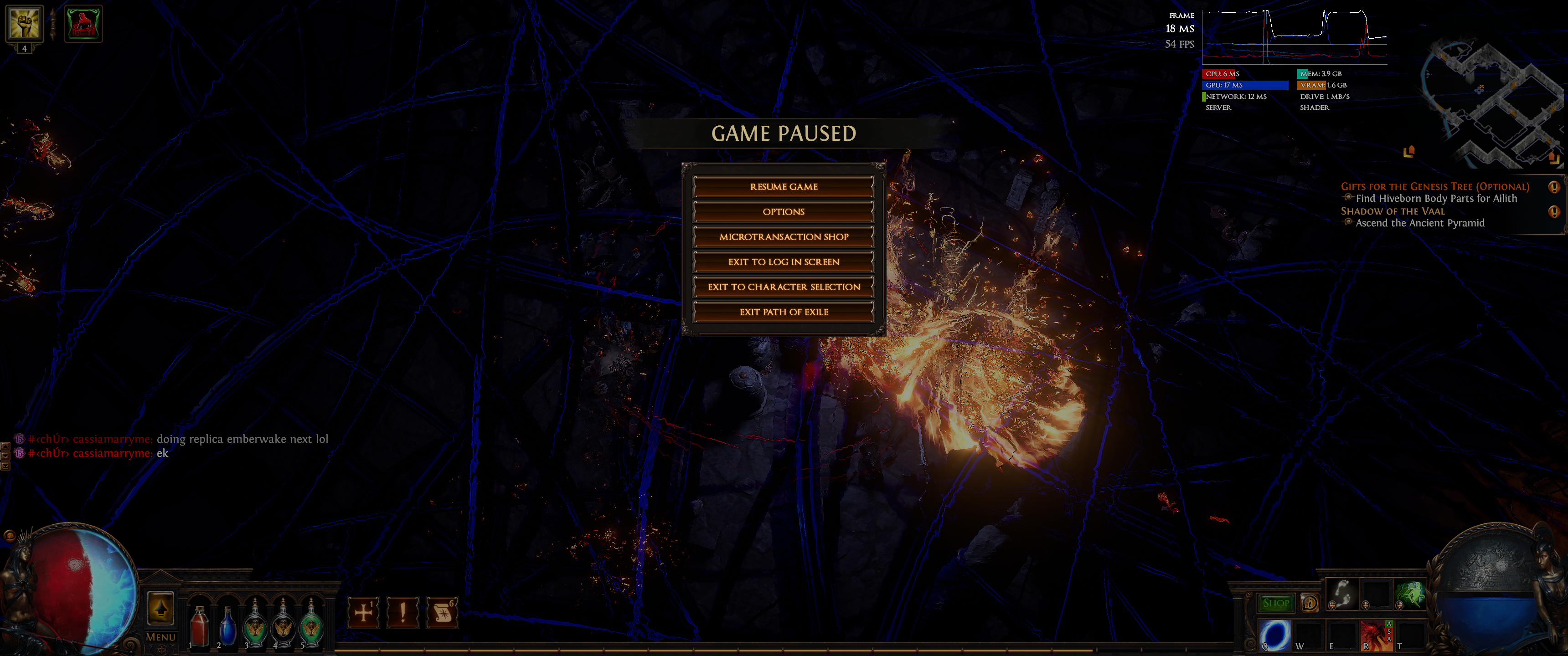 Does this same effect if you pause when you start a vaal temple map and run to the door and when it opens the door spews out a bunch of stuff and if you pause it there wait like 5 minutes you get your screen filled with stuff