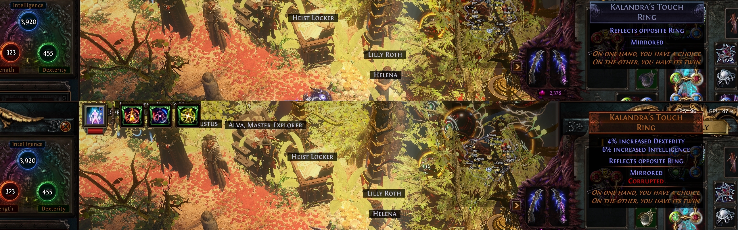 " Kalandra’s Touch duplicating the other ring is fine, that’s not the problem. The issue is that a corrupted implicit on Kalandra’s Touch itself doesn’t work at all, which makes no sense. The ring only copies the explicit mods from the other ring, it doesn’t replace its own implicits. So any corrupted implicit on it should still count, just like any other item in the game. If the implicit doesn’t apply, that means something is turning it off when it shouldn’t, so yeah that’s basically a bug. Not to mention it’s extremely hard to even get a Kalandra with implicit on it. 🌟 The very first POE lootfilter