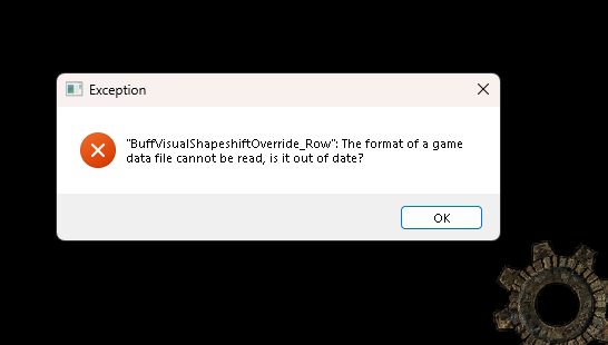 Exception: "BuffVisualShapeshiftOverride_Row" cannot be read.