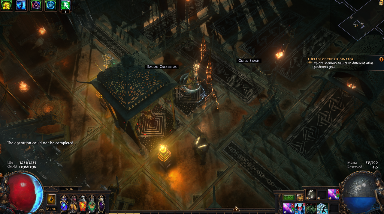I've been having a bug with the memory maps created by Eagon for about 7 days, which is preventing me from completing Maven's invitation and collecting the last point on the atlas. When I click on "Originato's Memory of Trauma" in Eagon, it opens the tab showing the map to be crafted, no matter what I put on the map or remove, normal, magic or rare, when trying to activate it, I receive the message: "The operation could not be completed." I've already changed my Hideout, I've spent several hours without logging in trying to reset the H.O. instance. I even upgraded the Core Pack to get a new hideout and try to solve it, but the error persists. I ask for your help, even if it's possible, removing it from the atlas so I can add it again, after all, this specific memory isn't important, but it's hindering my gameplay. Last bumped on Mar 22, 2026, 7:54:45 PM